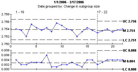 When the number of numeric values in one subgroup is different from that of the previous subgroup, this newer subgroup becomes the first point in a new data group.