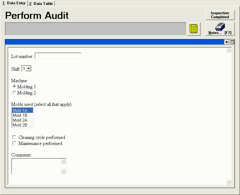 the user is entering defect counts in list mode.