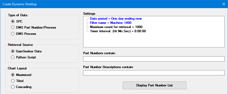 For example, the picture below creates a desktop for whatever SPC standards have been running on Machine 1400 in the last 24 hours.
