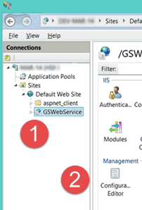 After you have configured this domain user with the necessary access to the config_path= folder and the GainSeeker database, the remaining steps will configure Windows Internet Information Services (IIS) and GainSeeker Mobile Web Service to use this domain user when accessing GainSeeker data.