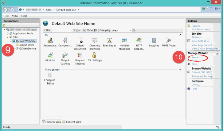 In the Connections area, click Application Pools. Then change the Classic .Net AppPool and DefaultAppPool to .Net version 4.0.