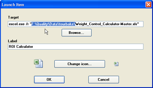 To test the modified shortcut and ensure that it correctly opens the .xls file, double-click the ROI Calculator shortcut.