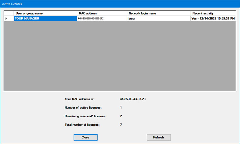 This displays information about users already logged in, about your computer, and about the total number of licenses available.