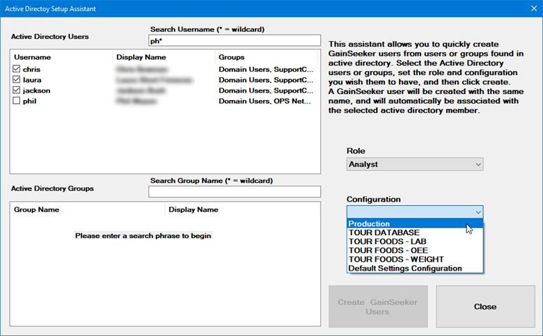 automatically create new GainSeeker users with the same names as the AD user or group names you select.
