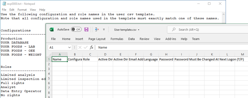 If you use Active Directory integration, you should ask your Active Directory (AD) administrator for a list of AD user names and group names that you can paste into the .csv file.
