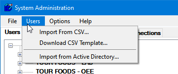 In the System Administration module, click the Users menu and select Import from Active Directory.