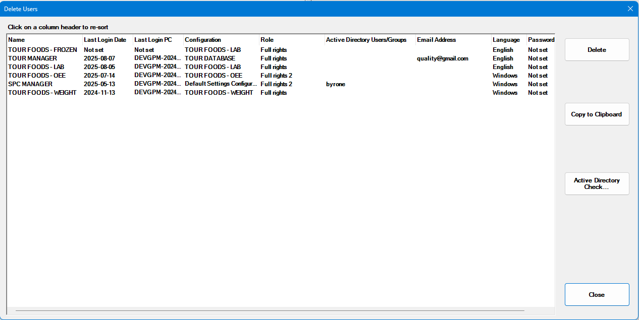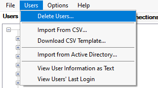 Select the users to delete. Click a column header to sort the table by that column. Use the Shift and Ctrl keys to select more than one user.