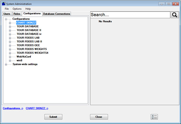 The configuration defines how many aspects of GainSeeker will function. If desired, you can create one or more configurations with different settings (including database table names and file paths) and assign those configurations to different users. You can also configure System-wide settings for GainSeeker, such as the address of your e-mail server.