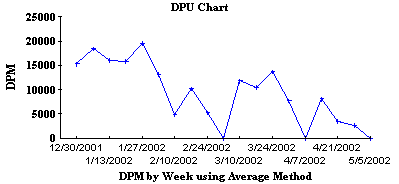 A DPU chart will plot data based on the number of defects relative to the total number of units inspected. Thus, control limit calculations for DPU charts are based on u-type data.