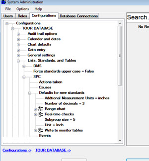 Configurations | (configuration name) | Lists, Standards, and Tables | SPC | Defaults for new standards