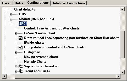 To configure default settings for SPC charts, expand the SPC tree.