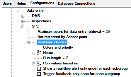 To configure settings for how SPC performs real-time data checks, expand the Real-time checks tree.