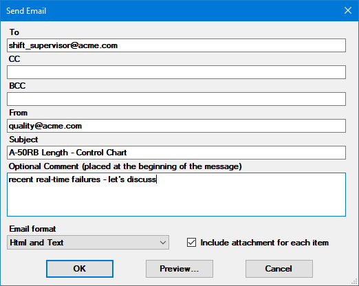 Sending charts and messages using Microsoft Outlook or GainSeeker's built-in email feature