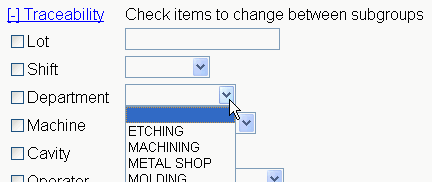 For SPC data entry in WebViz, you can configure each traceability field for either free-form entry (where the user types a value) or for selection from a predefined list of values.