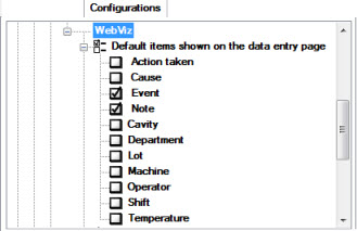 To configure the default setting for which traceability fields to display on the SPC data entry page in WebViz, expand this tree and select the traceability fields that you want displayed by default.