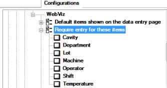To require the WebViz user to enter a value for one or more traceability fields during data entry, expand this tree and select the traceability fields for which to require user input.