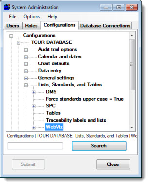 Configurations | (configuration name) | Lists, Standards, and Tables | WebViz