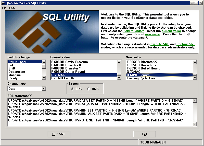 This topic contains information about the legacy SQL Utility, which is being phased out from GainSeeker Suite. It is still available for use in version 8.3, but is being replaced by the new GainSeeker SQL Utility function in the GainSeeker Utility module.