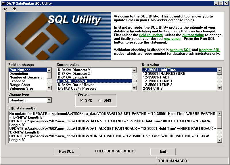 This topic contains information about the legacy SQL Utility, which is being phased out from GainSeeker Suite. It is still available for use in version 8.3, but is being replaced by the new GainSeeker SQL Utility function in the GainSeeker Utility module.
