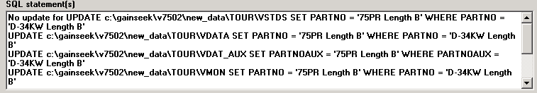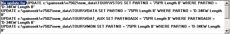 Using the example above, to rename the standard from "D-34KW Length B" to "75PR Length B" (which has not yet been created on your system), you would change the SQL statements to look like this: