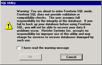 The FREEFORM SQL MODE label is displayed at the bottom of the screen, to remind you that data validation and compatibility checking has been turned off and you should proceed with extra caution.