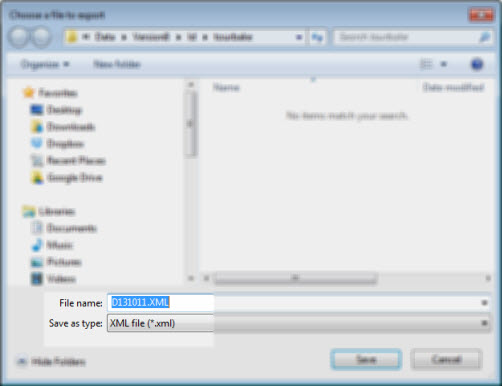 The Chose a File to Export dialog opens with the File name: field prefilled with the current date and time (see image below), but you can change the filename to whatever you want. GainSeeker prefills the file extension type as .xml by default. You can opt to change the extension type to .tab .