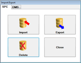 The Import/Export Data function lets you archive, delete, import, or export SPC or DMS data.