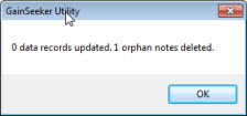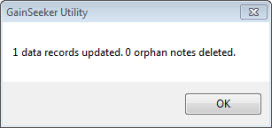 GainSeeker then displays a dialog stating how many records were updated (if applicable) and how many orphaned notes were deleted: