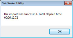 The Import Data Utility can be accessed from the Import/Export Data function in the GainSeeker Utility module.