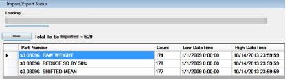 This can help you decide if you want to import all of the data associated with a particular part number or whether you want to further limit the data you import to a certain date range. Or, you may choose to limit the number of part numbers you import from the file.