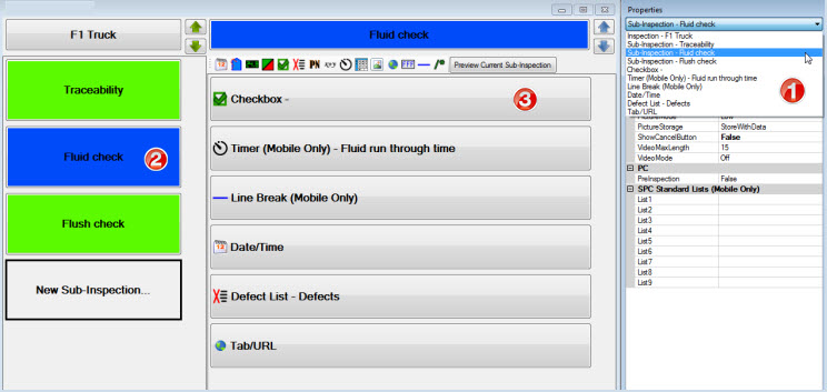 is selected and the test properties added to that sub-inspection display