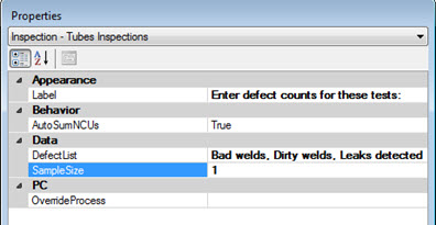 Defects to associate with the test are selected for the Defect List property: Bad welds,Dirty welds,Leaks detected