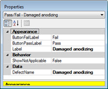 Damaged anodizing is selected for the DefectName property. This is the defect that is associated with this test.