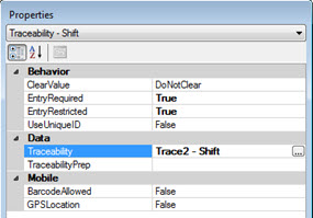 The EntryRestricted property is also set to True. This requires the operator to select the information to submit from a defined list (Shift 1, Shift 2, . . . , for example).