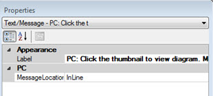 The text "PC inspections: Click the thumbnail to view diagram. Mobile inspections: Clink the link." is entered in the Label property field.