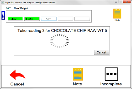 When the Inspection is waiting for the device to send a reading, a spinner window will be displayed.