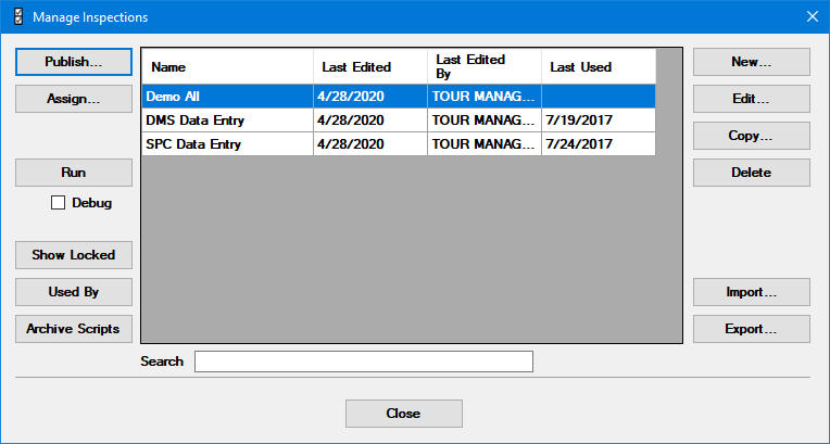 Use the Import... button to import a copy of an inspection to your system from a file you specify. The imported inspection must have been created using the Inspection Editor.