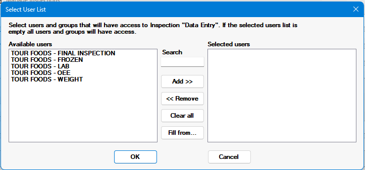 To assign this inspection to the same group of users that is already assigned to another inspection, click Fill from and choose an inspection that is already assigned to those users.