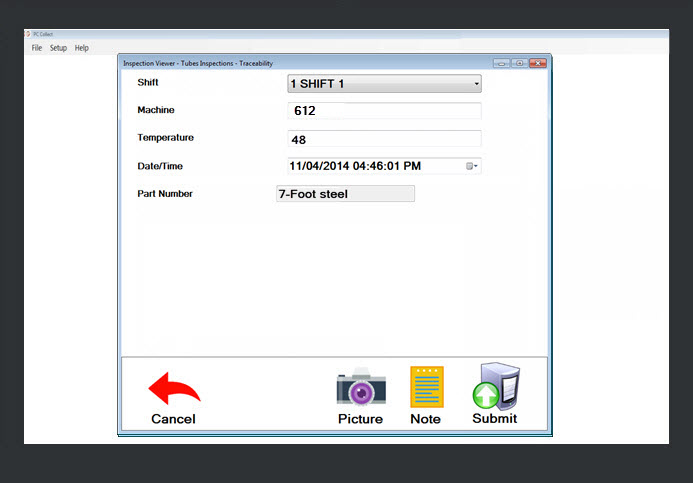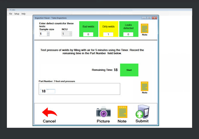This topic shows an example of a running inspection on a PC. There are unlimited other combinations for how an inspection might display, depending on how each inspection is designed. For step-by-step instructions about how this inspection was created, see Creating an inspection: Part 1