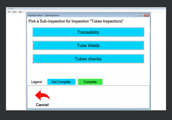 For this example, the inspector clicks the Tube Checks sub-inspection button. This action navigates the inspector to the Tube Checks inspection page (Fig. 8).