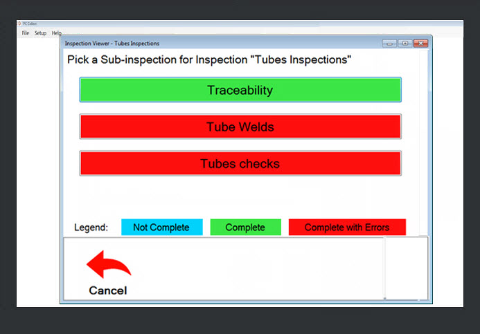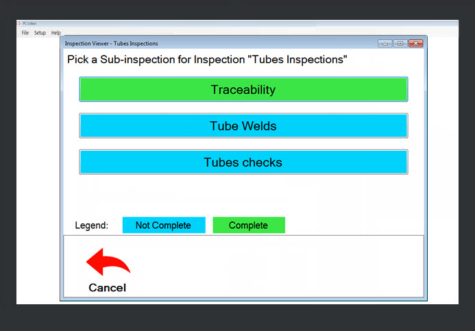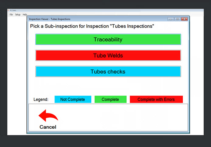 Click the Cancel button to return to the Pick an Inspection page (Fig. 1) to run a new inspection.