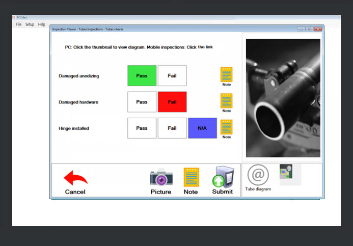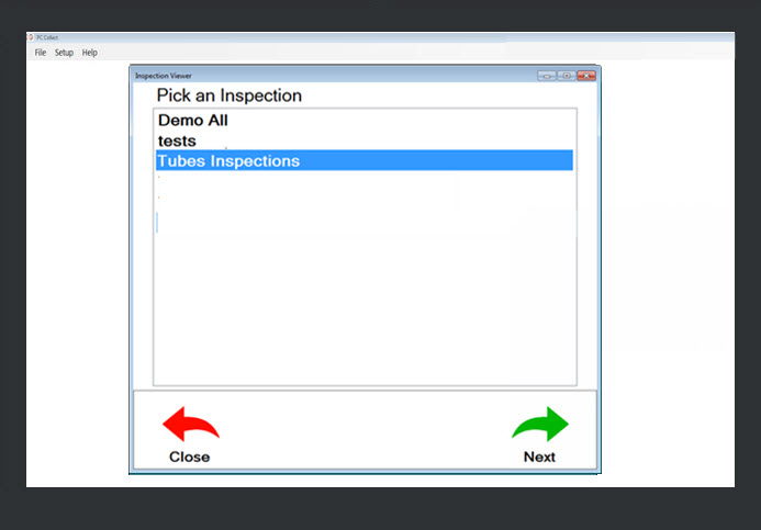 The Tubes Inspections is the inspection selected to run in the Inspection viewer on a PC (Fig. 1).