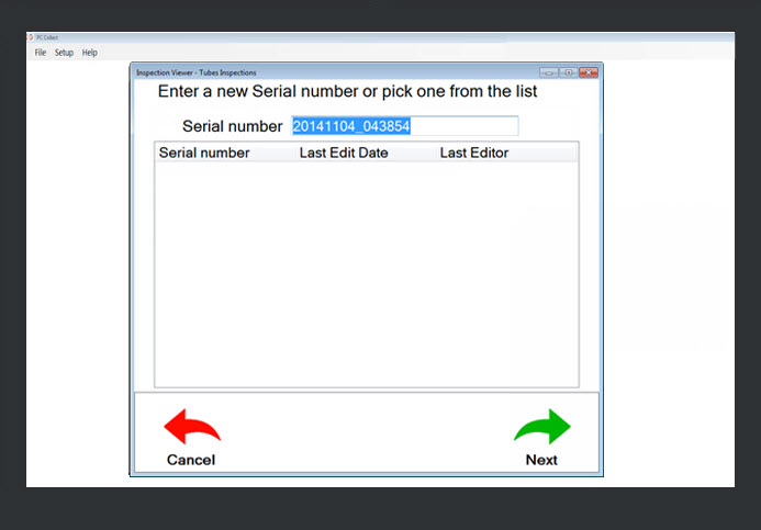To accept the Serial number that is prefilled in the text field, the inspector clicks Next. The inspector is navigated to the page where a sub-inspection can be selected to run. (Fig. 3).