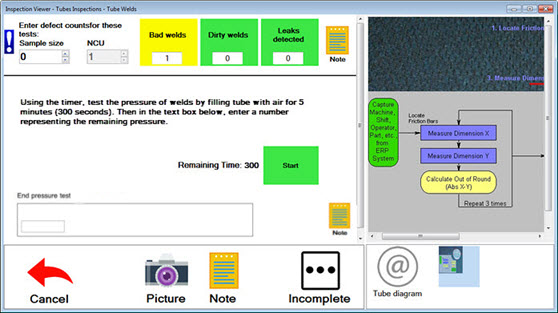 Every sub-inspection will have at least one task to perform. This might include selecting a checkbox to confirm you have completed a task, for example, or clicking a Pass or Fail button when the inspected item passes or fails the criteria set for the test.