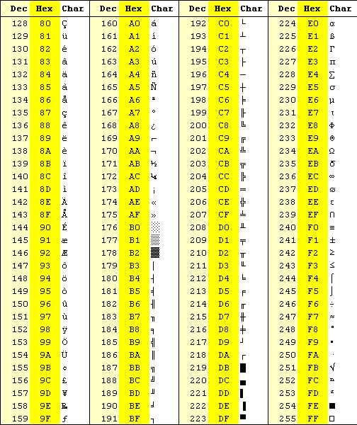 Additional comments on ASCII character 255
