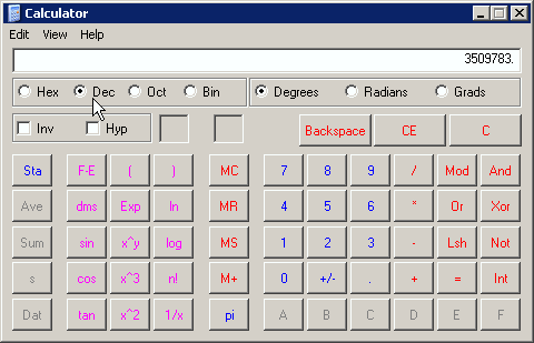 For example, typing the number 358E17 and then clicking Dec displays the following result: