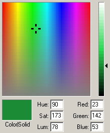 The unique combination of Red, Green and Blue color values represents the color swatch shown in the Color|Solid box.
