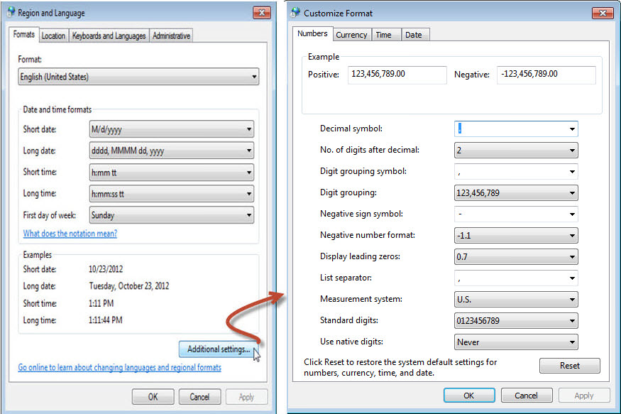 Format Numbers tab