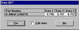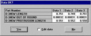 Another option for saving is to have your operator review all of the data they just entered before the data is saved. This is a good chance for the operator to correct any errors before the data is stored. If you select the Have your operator review the data before saving check box, the program will display the Data OK? window before saving the data.