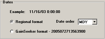 If the example date/time is formatted as YYYYMMDDHHmmsshh (Year, Month, Day, Hour, minute, second, hundredth of second) without separators, select GainSeeker format.